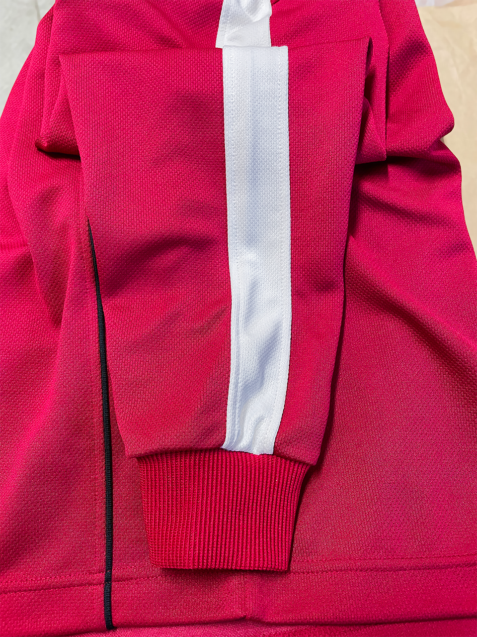 昔ながらの厚手なジャージ生地の商品です。学校ジャージらしい色の製品です。